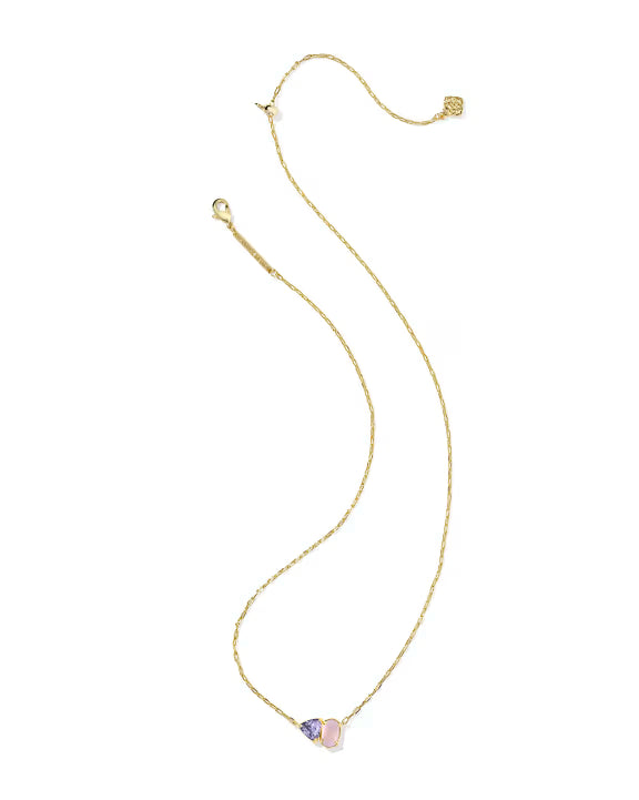 Tatum Short Pendant Necklace Gold in Purple Mix