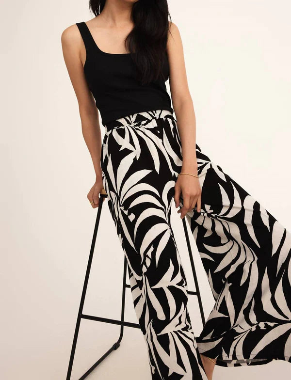 Embrace effortless style with the Z Supply Dante Vacances Pant in classic black. These high-rise, ankle-length pants feature an elastic waistband and a relaxed, flared leg, perfect for a boho chic look. Made from 100% cotton, they offer a comfortable fit for any occasion with an inseam of 26 inches. Closure: Pull on. Care: Machine wash and tumble dry.