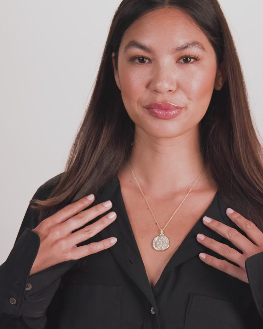 Sweet Dreams are made at Melinda Maria! We love the dreamy look of this intricately designed mother of pearl pendant necklace. Adding a pavé moon and stars helps to make your dreams even sweeter. It’s the perfect style to layer with your other favorite MM pieces.